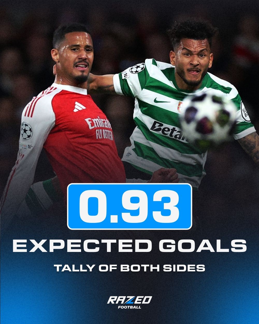 据统计,阿森纳与葡萄牙体育全场比赛预期进球(xG)仅为0.93。这是本赛季欧冠比赛中预期进球数最低的一次,也是自2019年以来四分之一决赛中最低的。